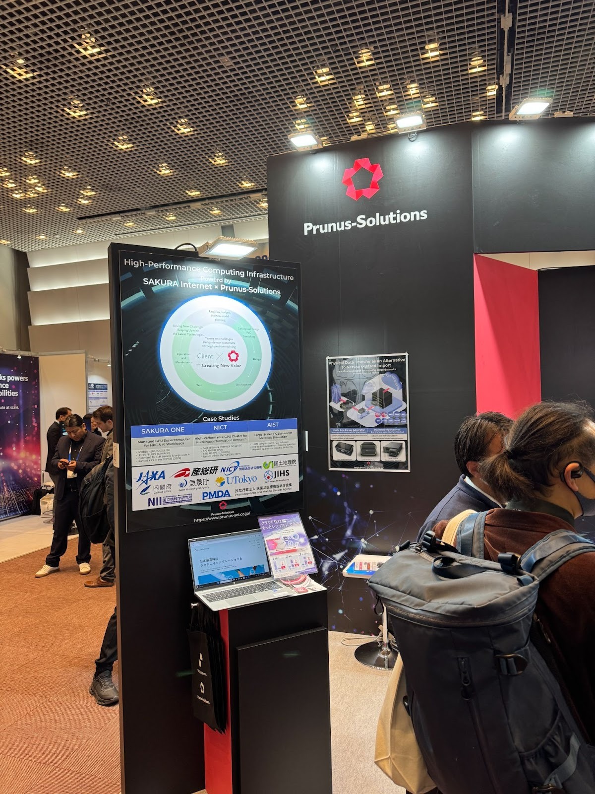 今回のブースでは、さくらインターネットグループのSIerとして、HPCインフラの設計・構築から運用までをトータルでサポートする当社の強みを展示しました。